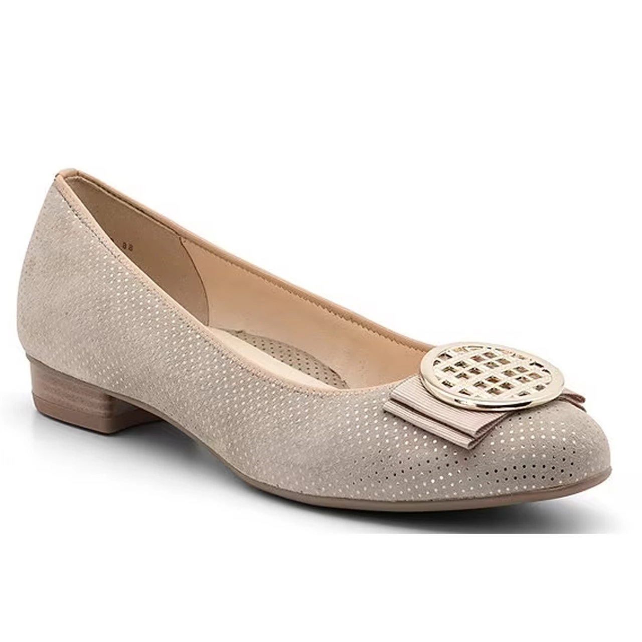 The Bambi is a classic smart ballet flat that is ideal for everyday to evening. An elasticized topline creates a custom fit with added comfort. This chic flat features a metallic ornament, fabric bow trim, a rounded toe, and Ara’s HighSoft technology.