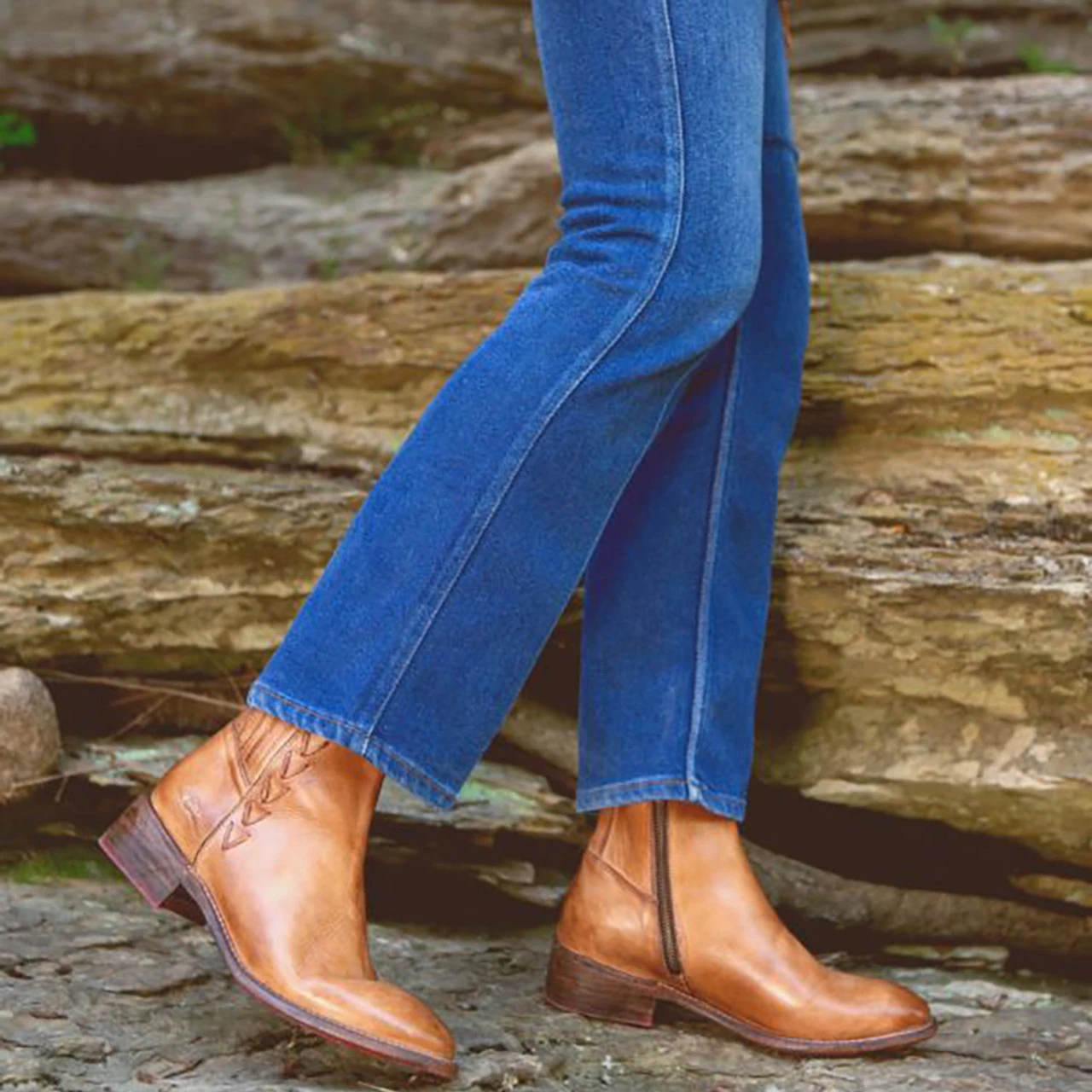 This leather ankle boot has charm and class all rolled into one. A little bit western and a little bit city, ALINA combines the best of both worlds. Starting with the leather inlays in a v shape on the ankle, invisible goring with stretch, and an approachable block heel for all-day adventures.Â