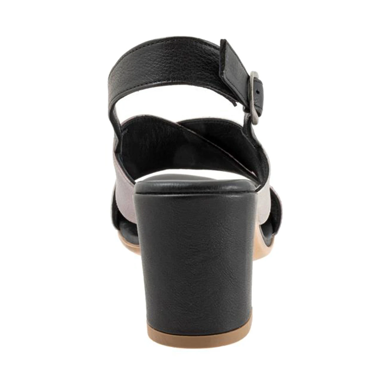 Criss crossing straps in multiple colors work with an adjustable sling and color-matched wrapped heel on the Natasha sandal.