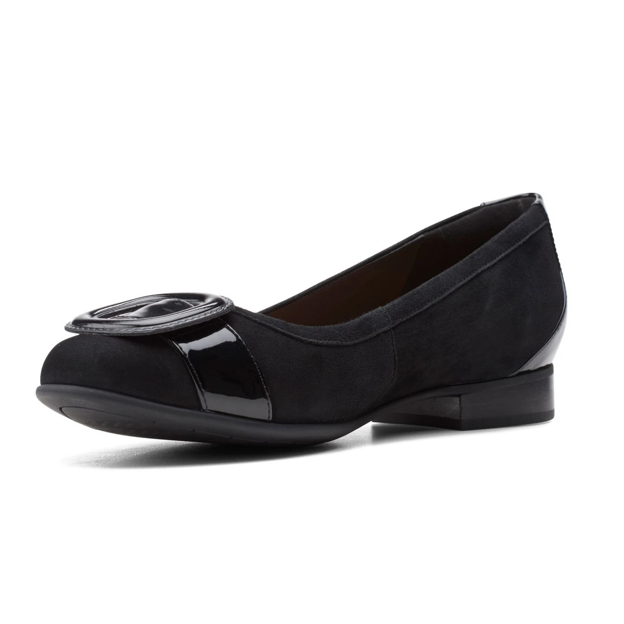 Enjoy the comfort and quality that has made Clarks a household name in the ballet flat-inspired Blush Cove. It surrounds the foot in soft comfort, while a moisture-wicking Ortholite® footbed keeps feet fresh and dry.