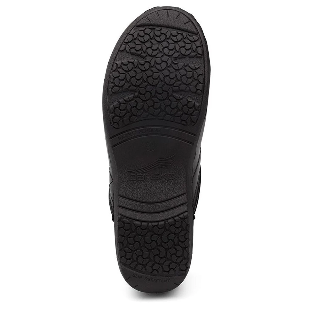 - Removable leather-covered dual density PU footbed with Dansko Natural Arch technology and memory foam for cushioning and support.