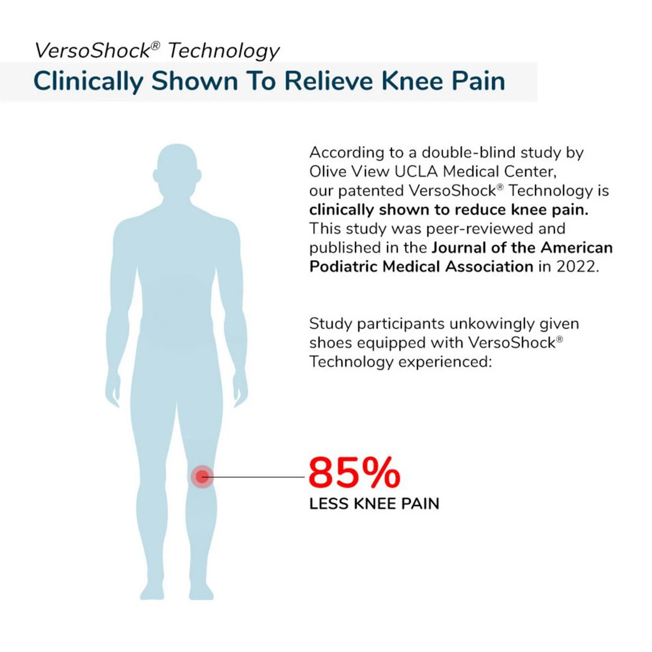 - VersoShock patented technology is clinically shown to relieve pain in the knees, by up to 85%