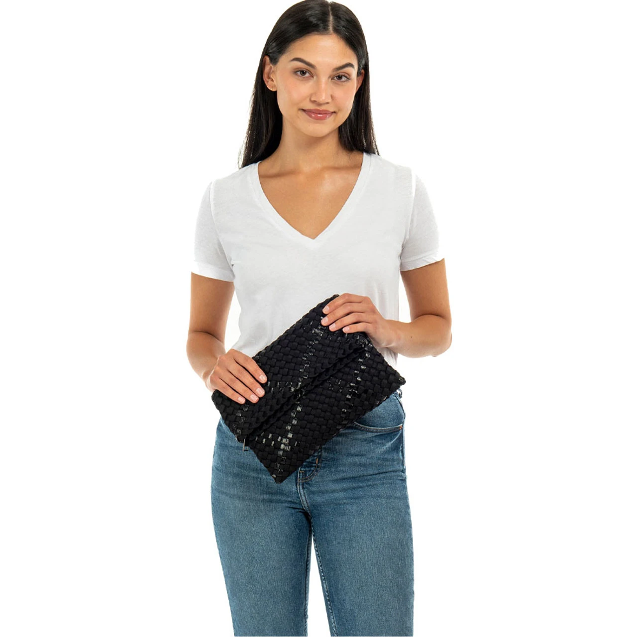 Ultra versatile bag worn as a crossbody or fold over clutch.