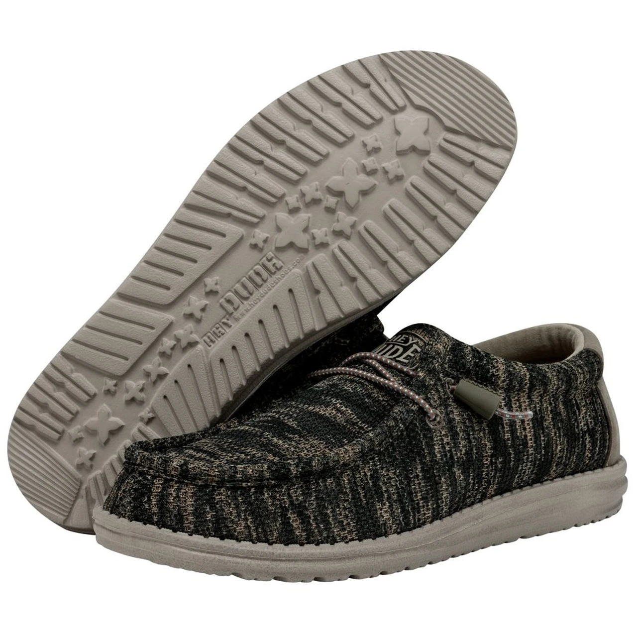 Hey Dude’s most popular moc meets sock-like comfort. The Wally Sox collection showcases classic style constructed in a stretch-polyester fabric without compromising support, made to hug your foot throughout. Built on an ultralight outsole, and easy-on system, featuring no-tie elastic laces and finished off with a cushioned ankle collar for extra comfort.