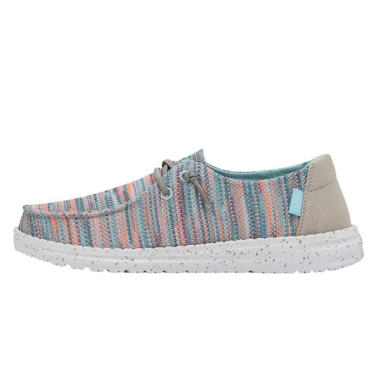Hey Dudes most popular moc meets sock-like comfort. The Wendy Sox collection showcases classic style constructed in a stretch-polyester fabric without compromising support, made to hug your foot throughout. Built on an ultralight outsole and designed with our easy-on system, featuring no-tie elastic laces.