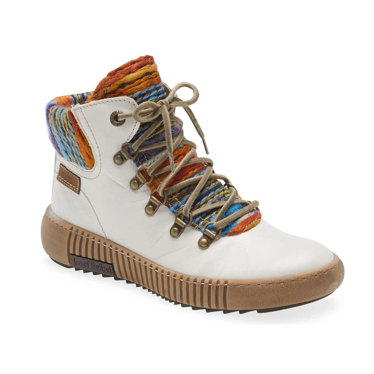 Josef Seibel brings funky and fun design together with full grain leather and colorful wool to make the one of a kind Maren 06 boot.