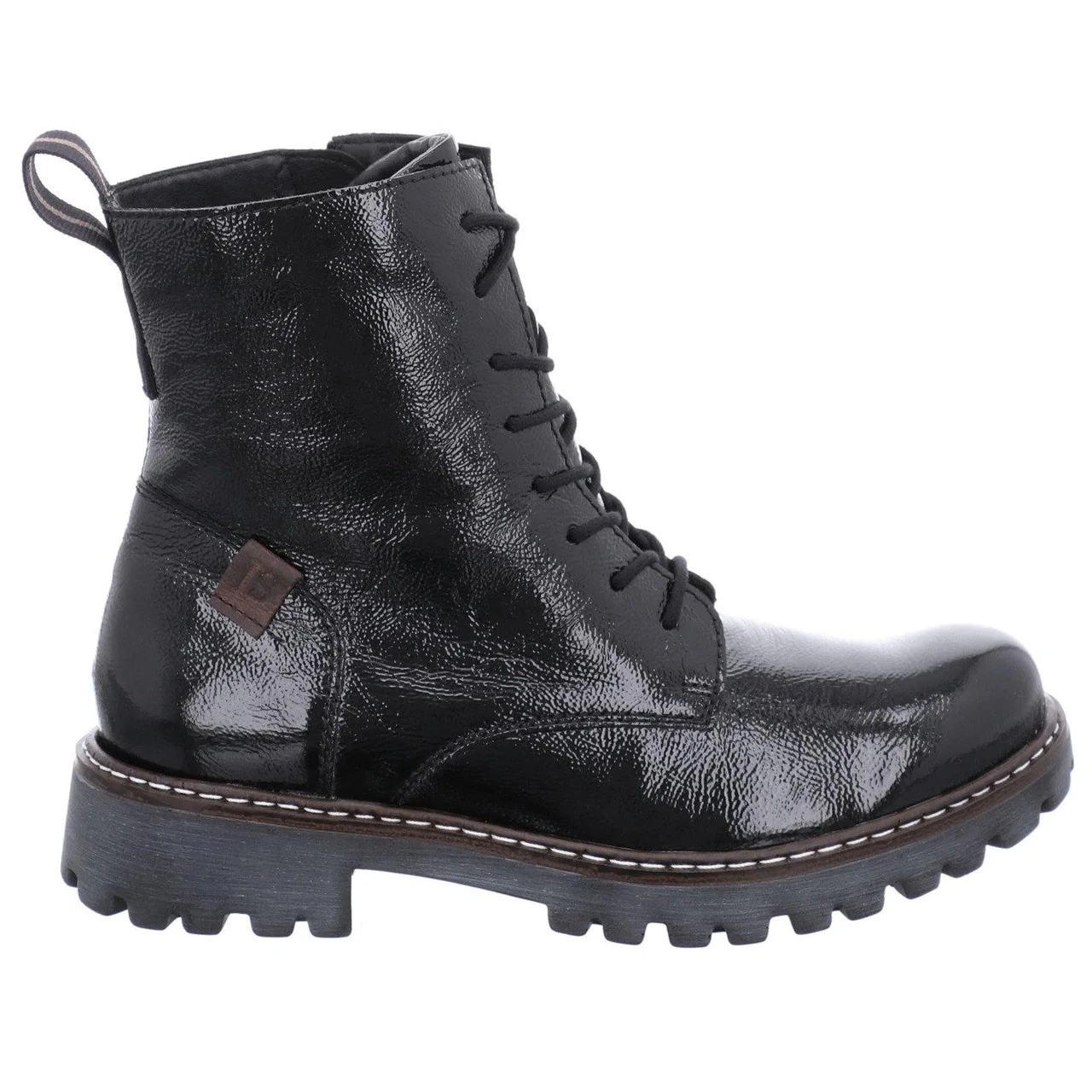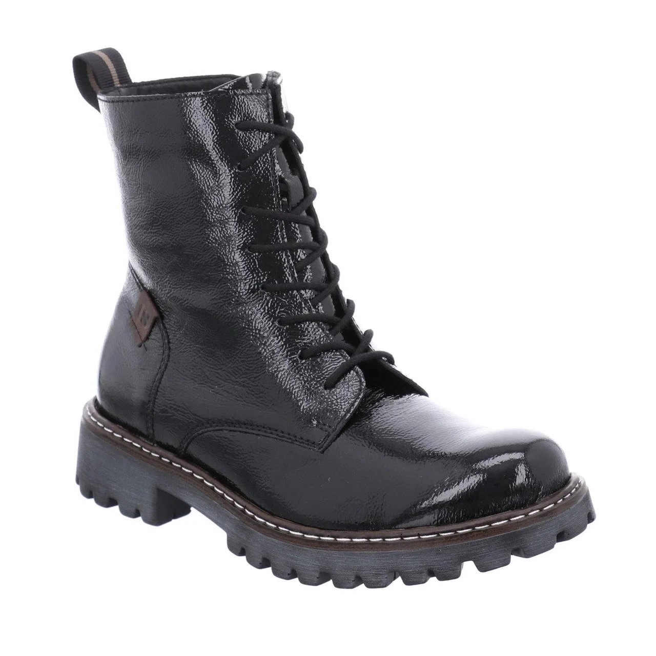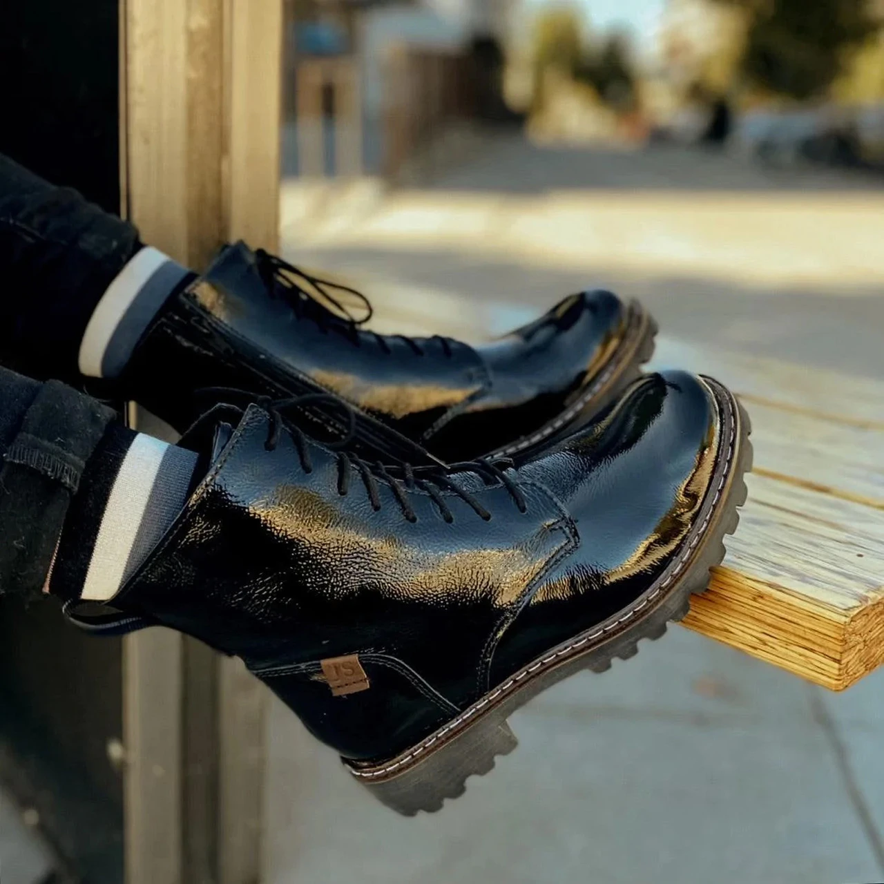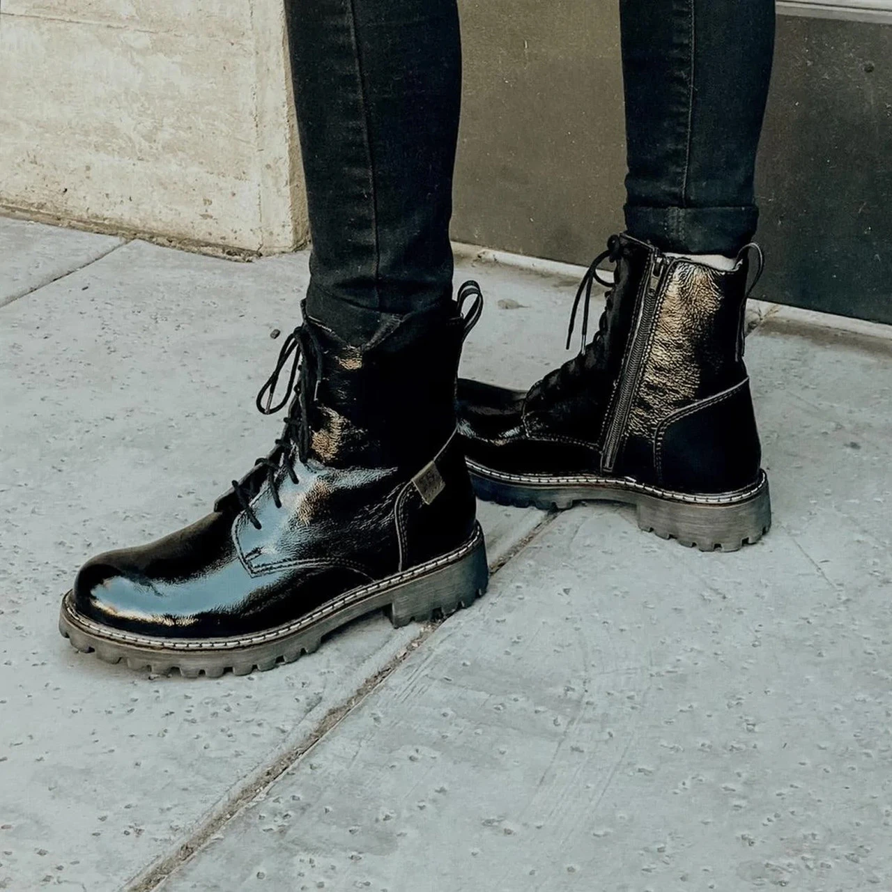 All of the throwback style, without all the lug weight. Our stylish patent combat boot is super lightweight and flexible.