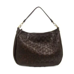 A bohemian style hobo bag in a contemporary woven pattern. The buffalo grain has an authentic leather look but is crafted in earth friendly vegan leather. Equipped with 2 shoulder straps to wear as a short shoulder or a crossbody bag when you want to be hands free. With a rear back zip pocket, multiple interior pockets and accented with a signature Joy zip pull on the top zipper closure.
