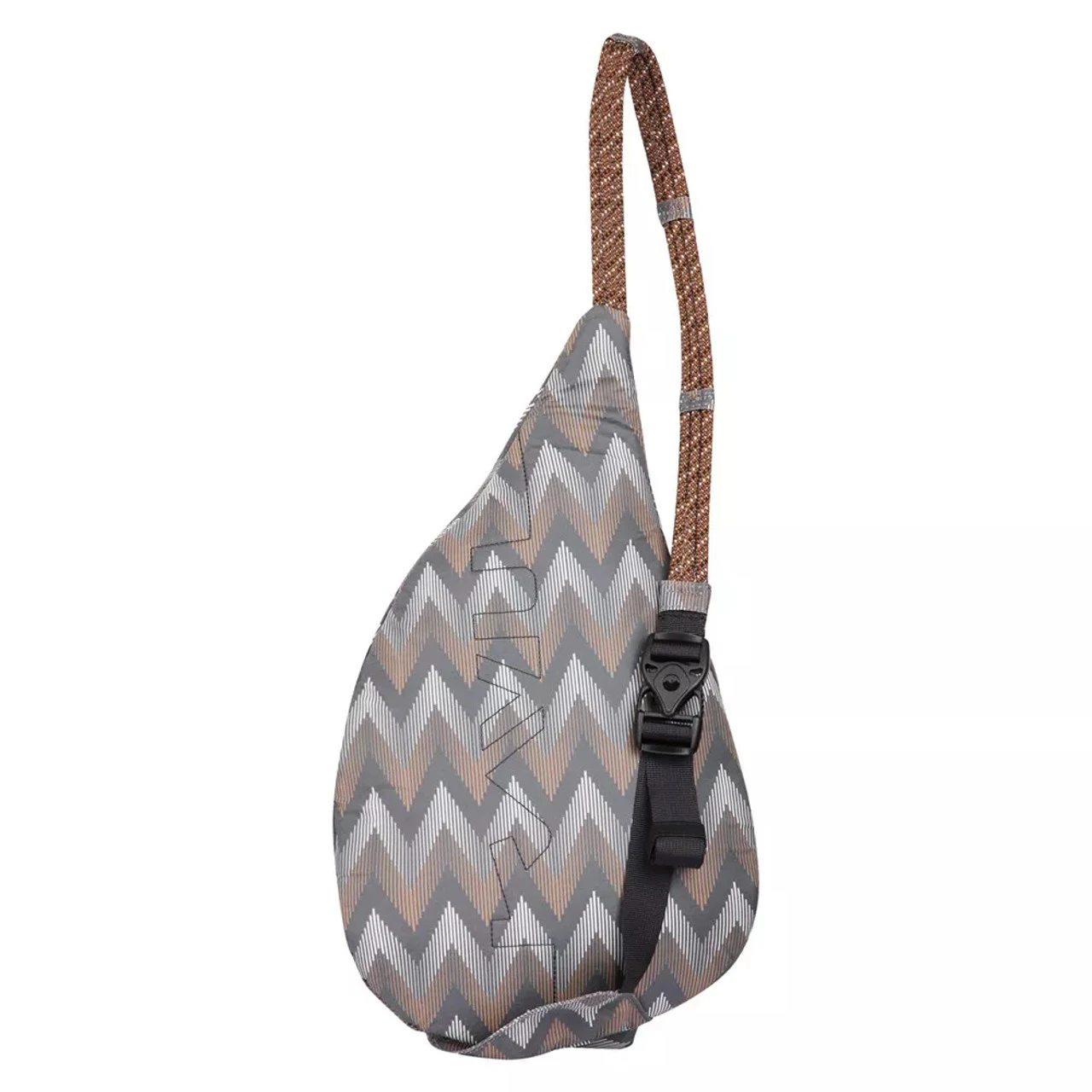 Packed with the same features as your classic Mini Rope Bag, but in a new 5oz 100% nylon taslan. A mini sling pack with adjustable rope shoulder strap, two vertical zip compartments, two key or cell phone pockets, padded back with KAVU embroidery.