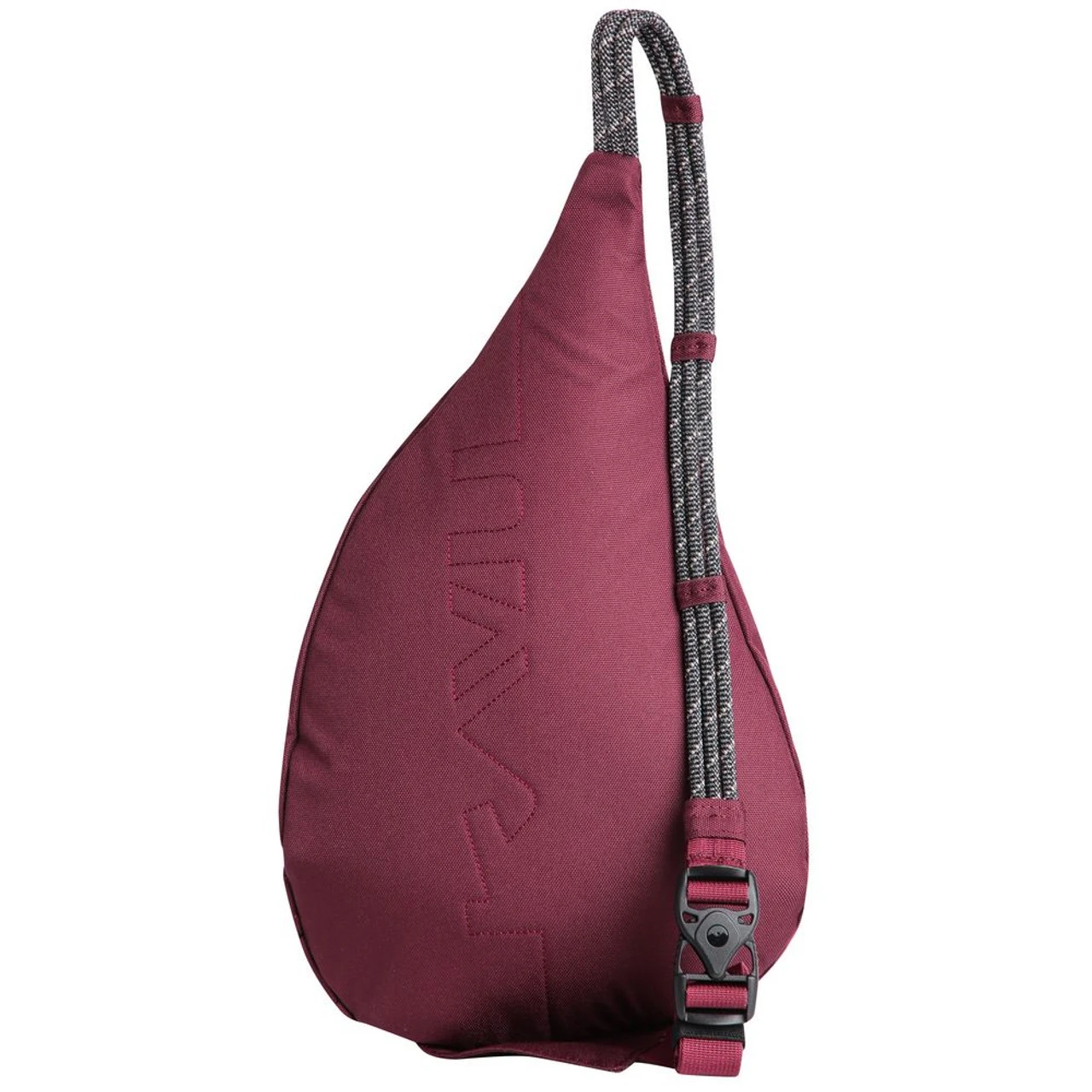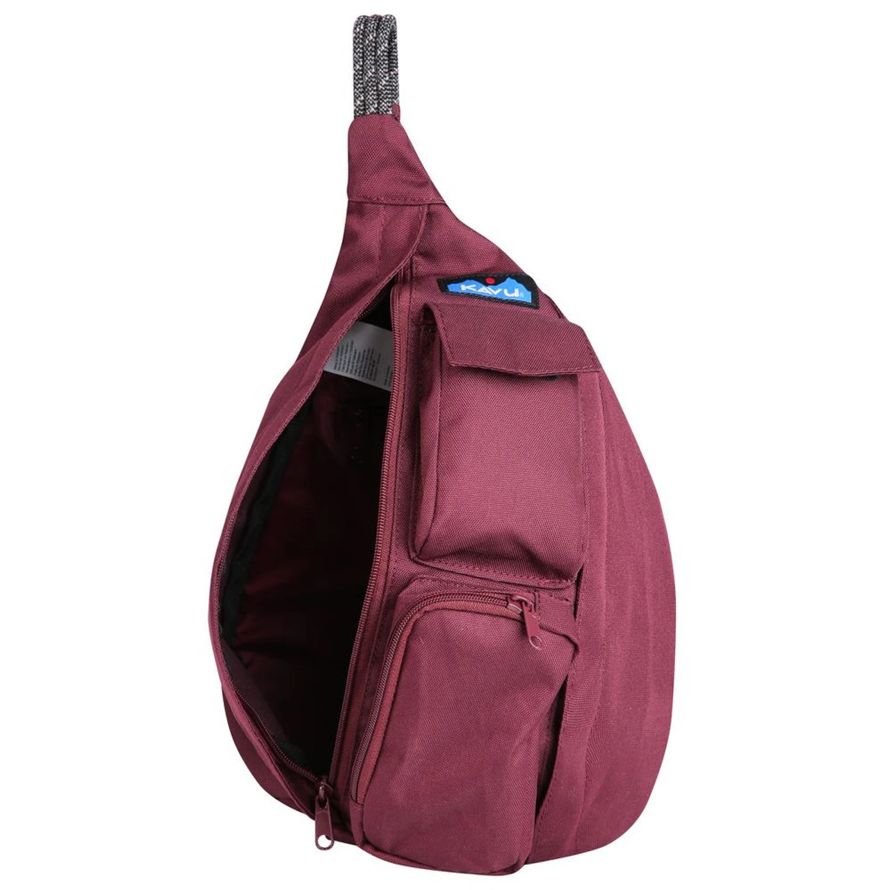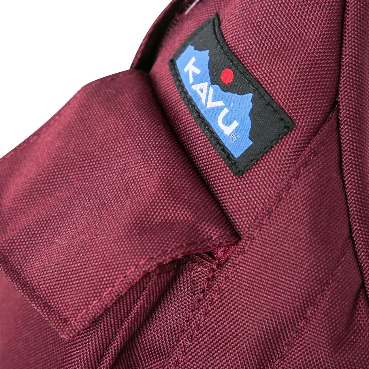 - This polyester mini sling pack features an adjustable rope shoulder strap and side release buckle, two vertical zip compartments, two key or cell phone pockets, padded back with KAVU embroidery.