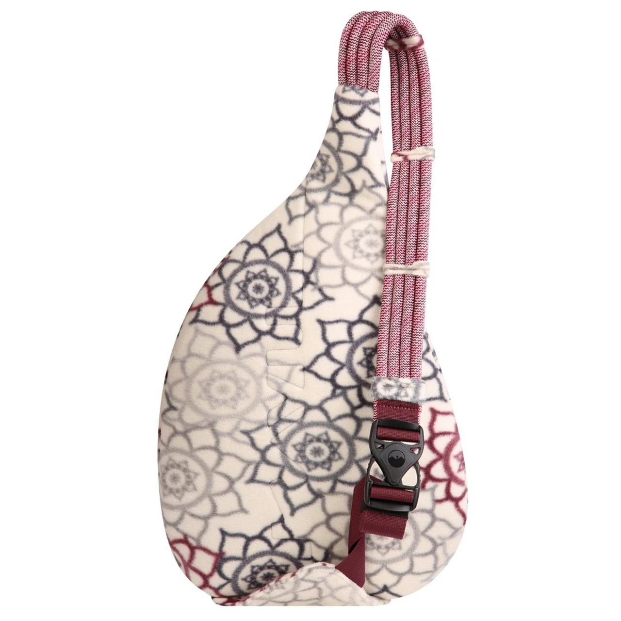 - Sling pack with adjustable rope shoulder strap and side release buckle, two vertical zip compartments, two key or cell phone pockets, padded back with KAVU embroidery.