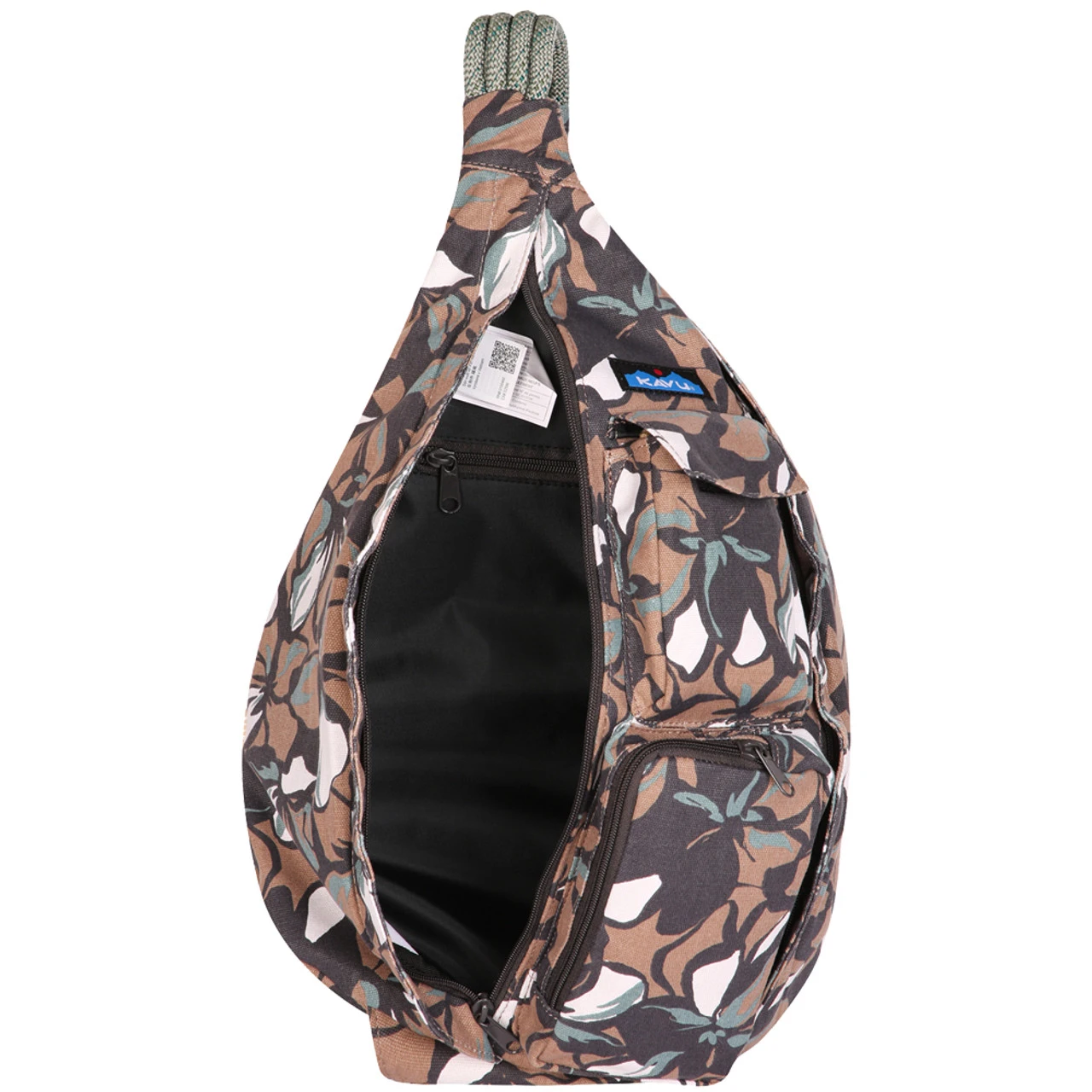 The Rope Bag is quintessential KAVU. This cotton canvas sling features an adjustable rope shoulder strap with side release buckle, two vertical zip compartments, two key or cell phone pockets, and a padded back with KAVU embroidery.