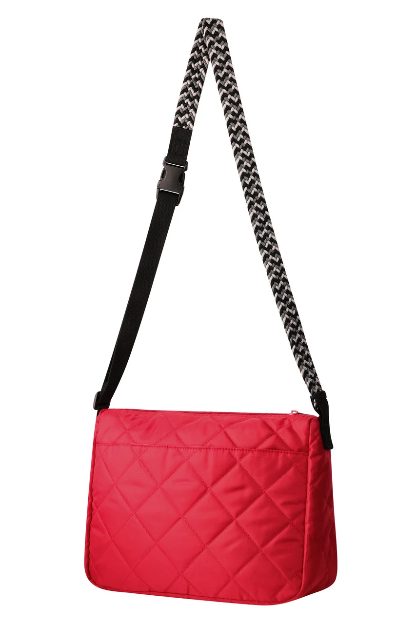 - Diamond quilted cross body bag with adjustable braided elastic rope shoulder strap