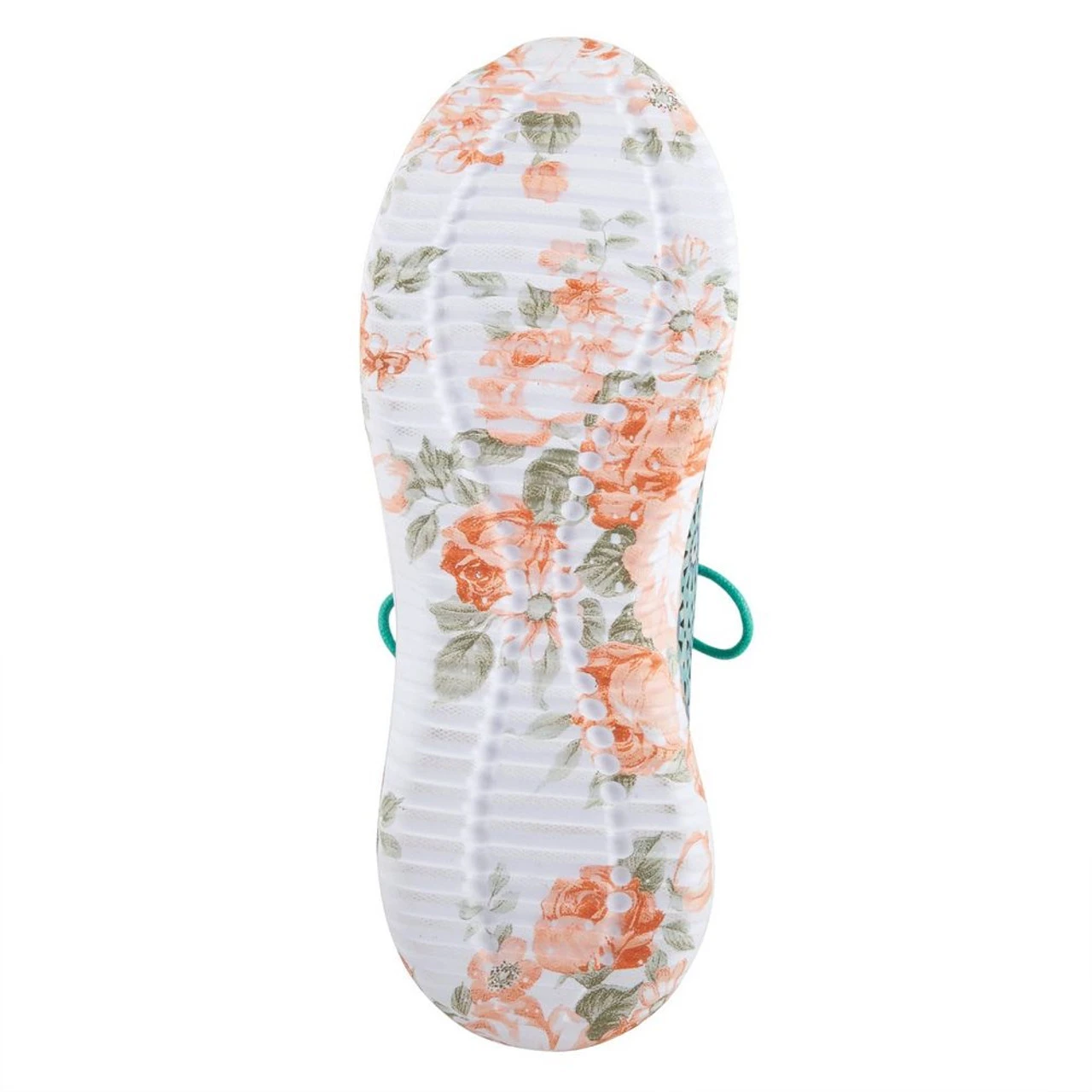 A lightweight sneaker that will put a spring in your step. This shoe has a laser circle cutouts, lace up straps and a beautiful metallic pattern that matches the Hand painted floral print on the outsole. The heel drop offers not only a lift but ultimate comfortability.