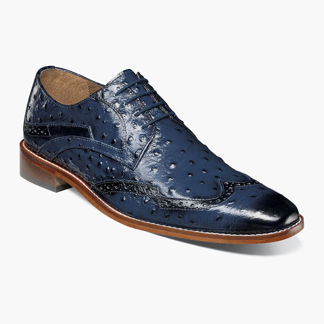 Designed to leave no head unturned, the Gennaro Wingtip Oxford features a sleek silhouette and an eye-catching ostrich quill print leather upper. Worn with a suit or jeans, the Gennaro is guaranteed to make any event special.