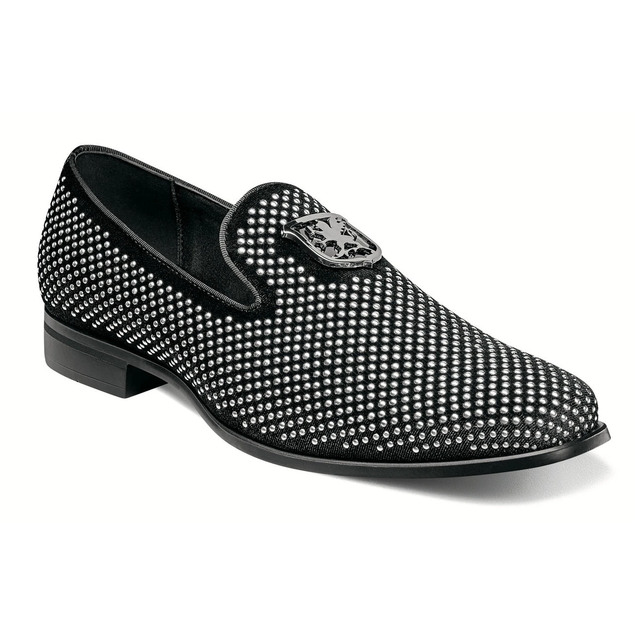Features a fabric upper covered from heel to toe in dazzling studs. The dress style sole and sleek profile is topped off with the famous Stacy Adams crest. Go ahead, get your Swagger on.