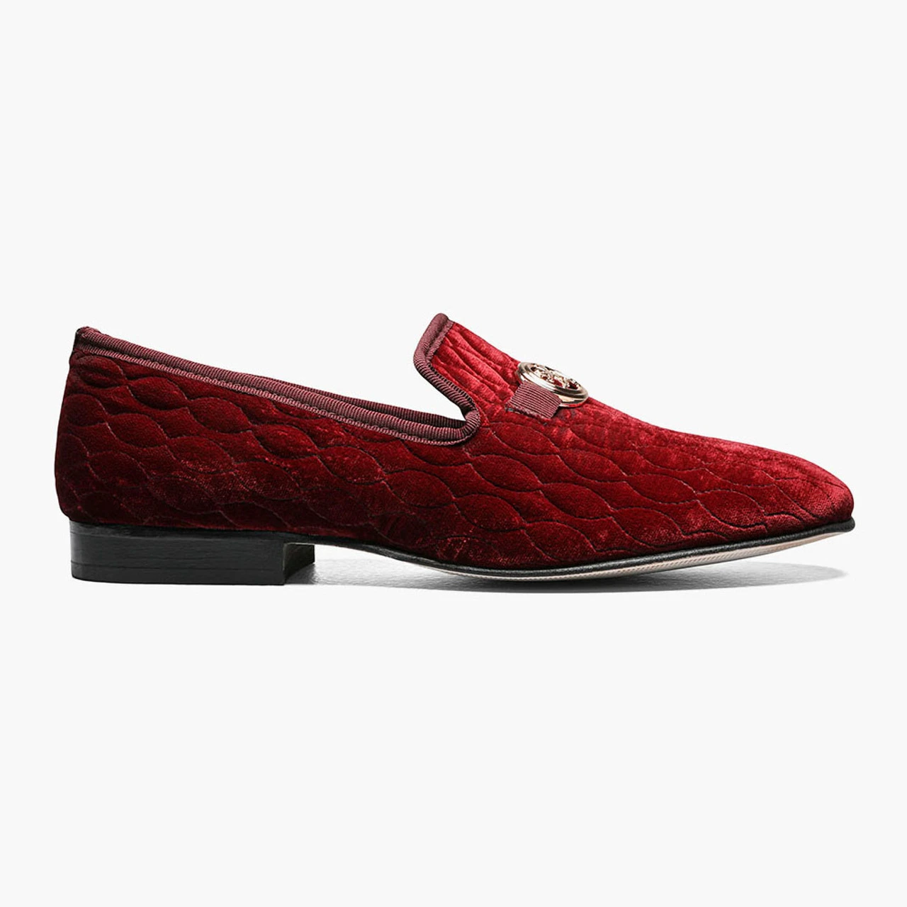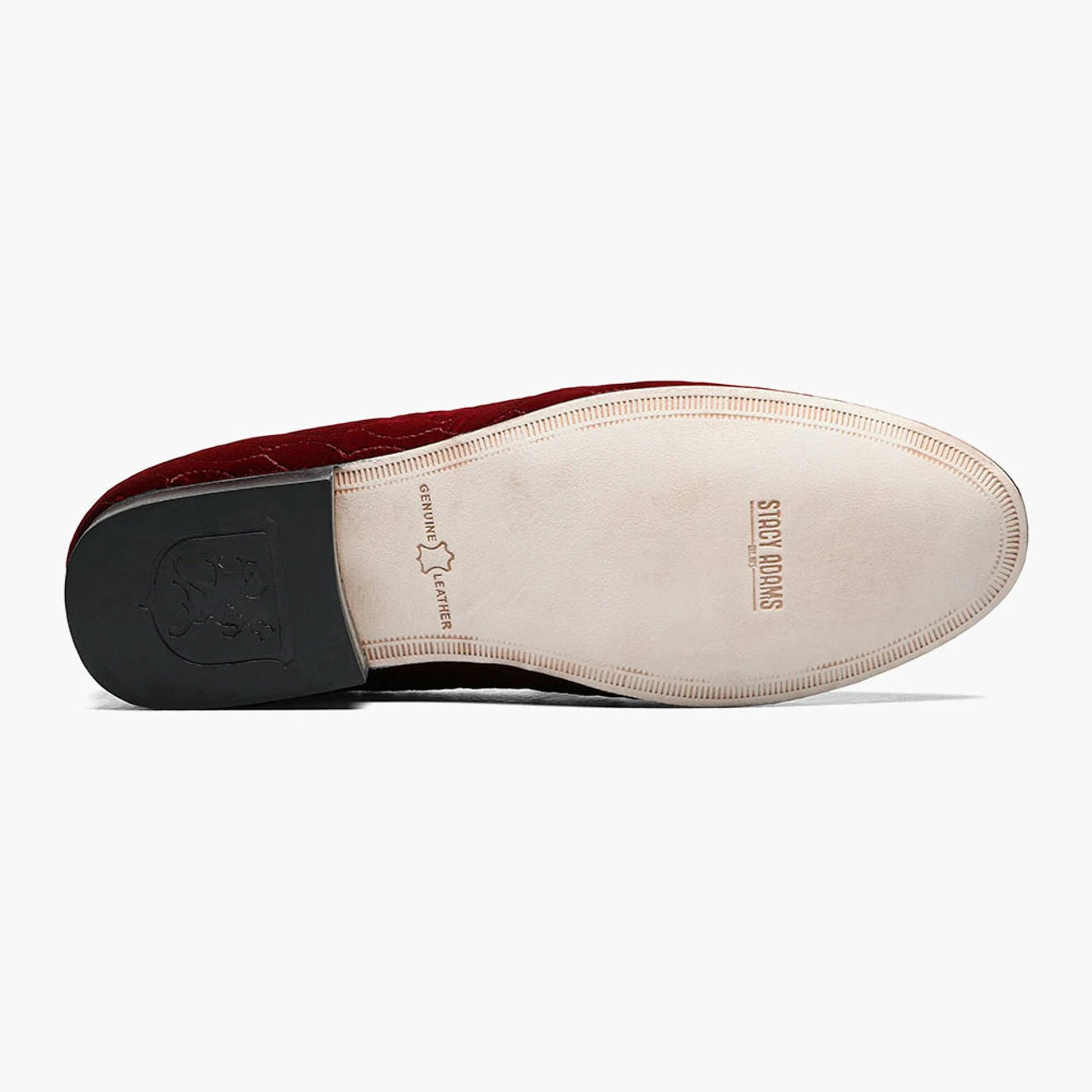features a quilted velour upper highlighted by a metal bit with the Stacy Adams emblem. It also has the quality of a genuine leather sole and the comfort of a Memory Foam insole.